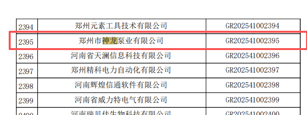 神龍泵業(yè)成為2025年第一批認(rèn)定報(bào)備的高新技術(shù)企業(yè)